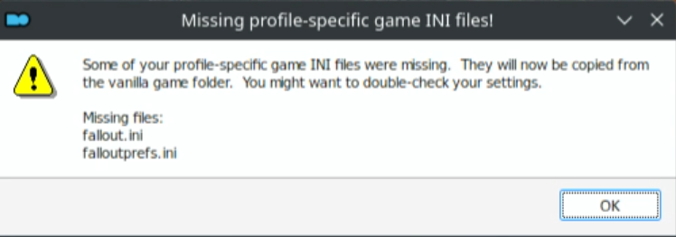 You may get a warning about some missing ini files: