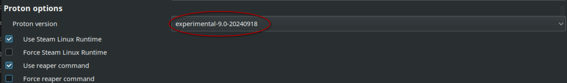 Lastly, scroll down in the Steam Tinker Launch window until you see 'Proton Version', and change it to be "Proton Experimental":