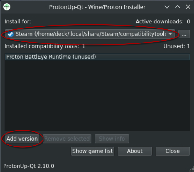 Once installed, open up ProtonUp-QT from the applications menu, ensure Steam is selected at the top, and then click Add Version: